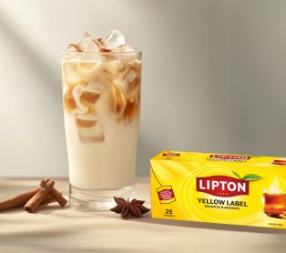 Ingrediencie na jednu porciu: 1 vrecúško Lipton čierny čaj, 100 ml vriacej vody, 00 ml mlieka (klasické alebo rastlinné – napr. ovsené/mandľové), 1 lyžička medu alebo javorového sirupu (podľa chuti), ½ lyžičky mletej škorice, ¼ lyžičky mletého zázvoru, štipka mletého kardamónu (voliteľné), kocky ľadu