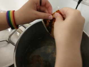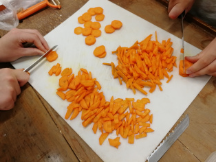 V septembri sme varili hŕstkovú polievku podľa kuchárskej knihy z roku 1914, pred Vianocami sme varili ukrajinskú polievku, v januári pravý maďarský guláš, minulý týždeň čokoládu a dnes? Dnes čínsku ostrokyslú polievku. A zajtra? Zajtra sa budeme učiť miešať drinky.