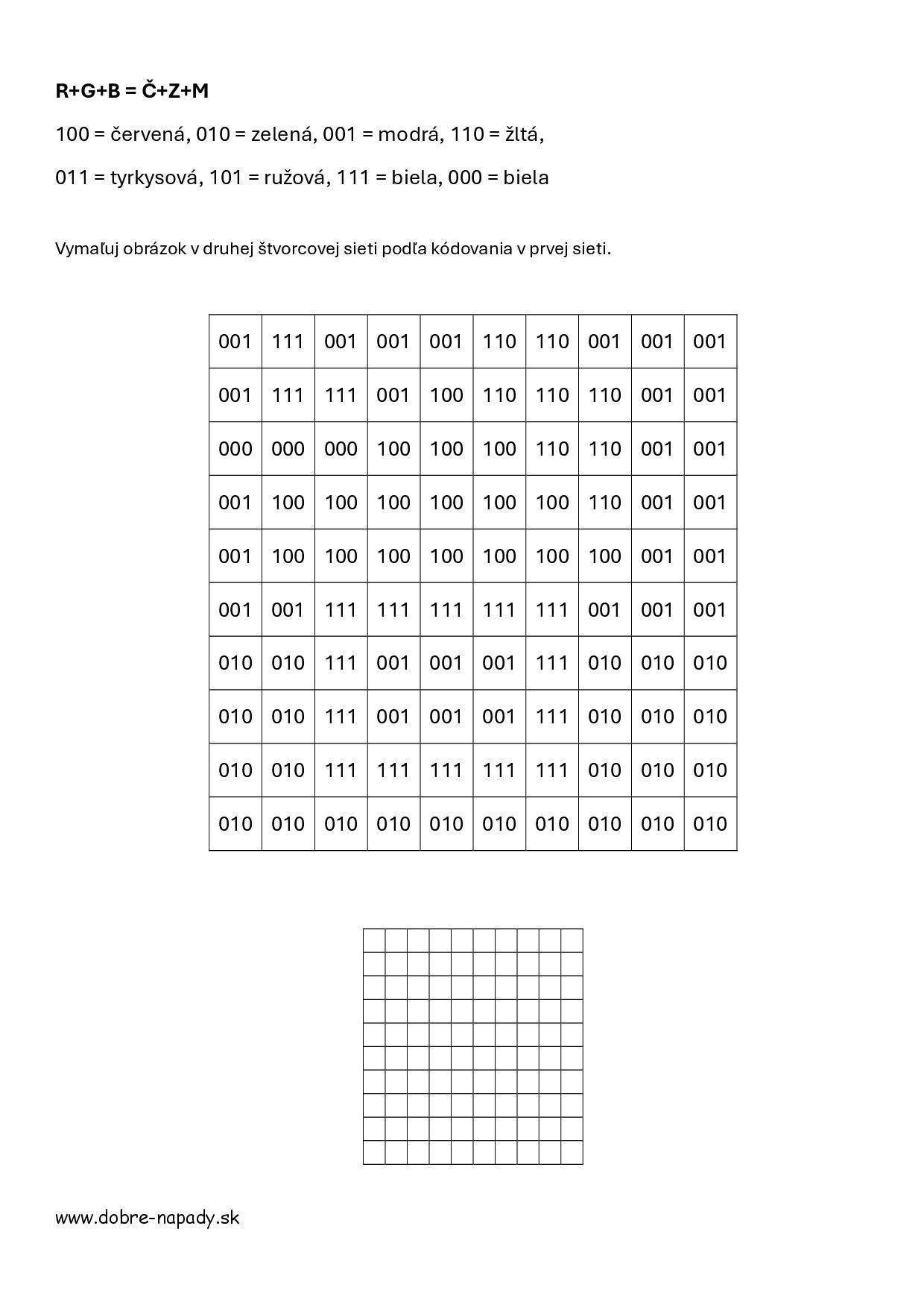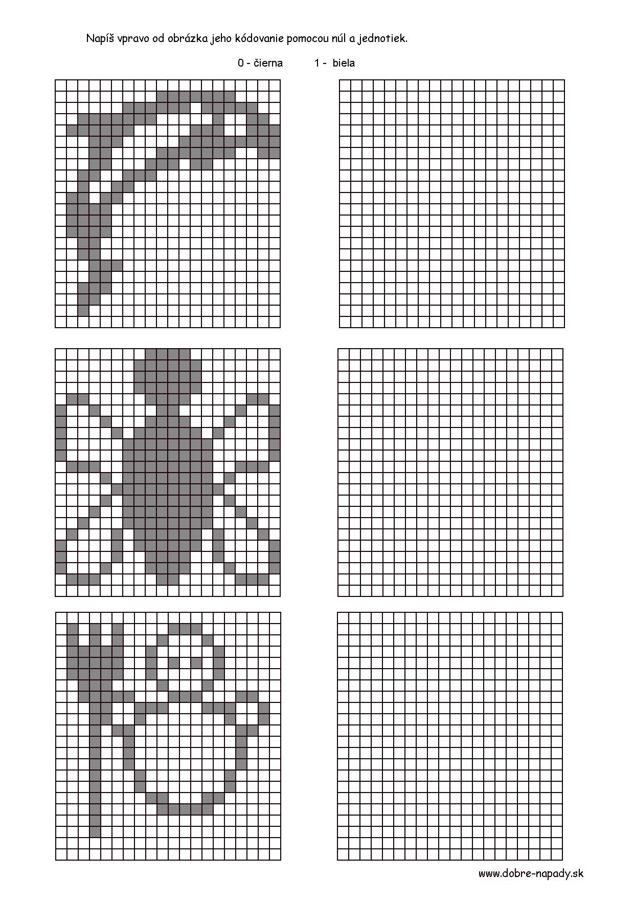 Na informatike v šiestom ročníku máme v osnovách aj ako sa zobrazujú obrázky na obrazovke - čiernobiele aj farebné. Mám rada túto tému. Pomáham si pri vysvetlovaní code.org, kde som našla krásne úlohy - nemusela som vymýšľať ja. No, nebojte sa, aj tak som nejaké vymyslela a žiaci ich robia na papieri. Tieto papierové potom používam aj pri výuke mladších žiakov na suplovaných hodinách či výuke bez počítača. Tým len poviem, že je to kódovaný obrázok. Menšie deti podľa mňa ešte nevedia veľmi pochopiť čo je to pixel. Tak si aspoň kreslíme. 😍