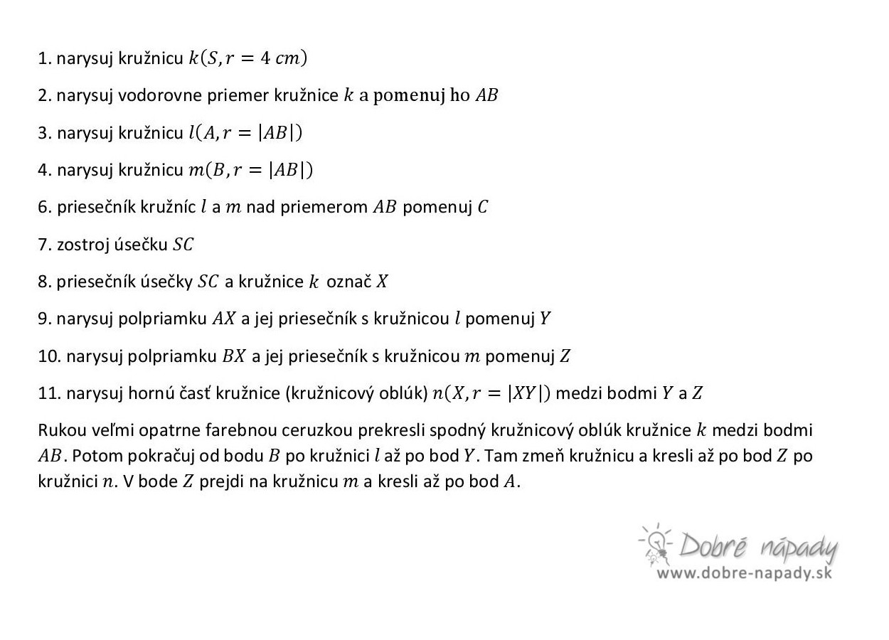 Na ľavej strane si môžete stiahnúť obrázok s postupom ako narysovať vajíčko. Ak si upravíte veľkosť polomeru prvej kružnice, záskate rôzne veľkosti vajíčka.