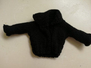 Diely zošijeme. Okolo priekrčníka urobíme niekoľko radov krátkych stĺpikov, čím vytvoríme golier. Prípadne môžeme urobiť dlhšie a uzavrieť do kapuce.