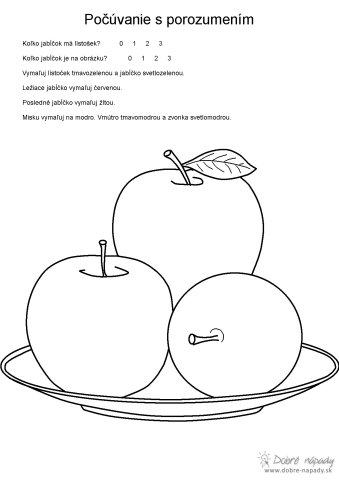 Pracovné listy pre predškolákov na trénovanie jemnej motoriky, pozorného počúvania a počítania.