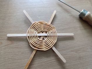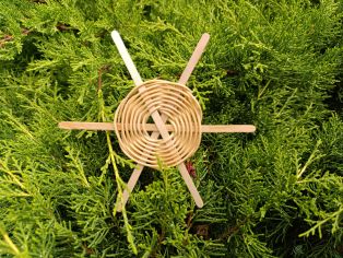 Vyberieme si paličky rovnakej dĺžky a hrúbky. Pripravíme si pedig (ratan) hrúbky 0,5 mm alebo pri väčších paličkách môžeme aj hrúbky 0,75 mm či 1 mm. Pedig namočíme do studenej vody na pár minút. Môže to byť aj 4 - 5, podľa hrúbky a kvality. Prípadne môžete použiť farebný a ten sa namáča menej. Predsa je to len prírodný materiál.