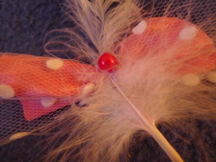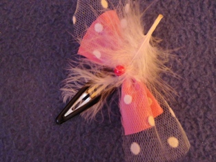 Šnúrkou s guličkou si prichytíme kúsok látky k umelému pierku. Potom ich spolu prichytíme na sponku pomocou obojstrannej lepiacej pásky. Nič zložité. A každý deň môže byť sponka iná.
