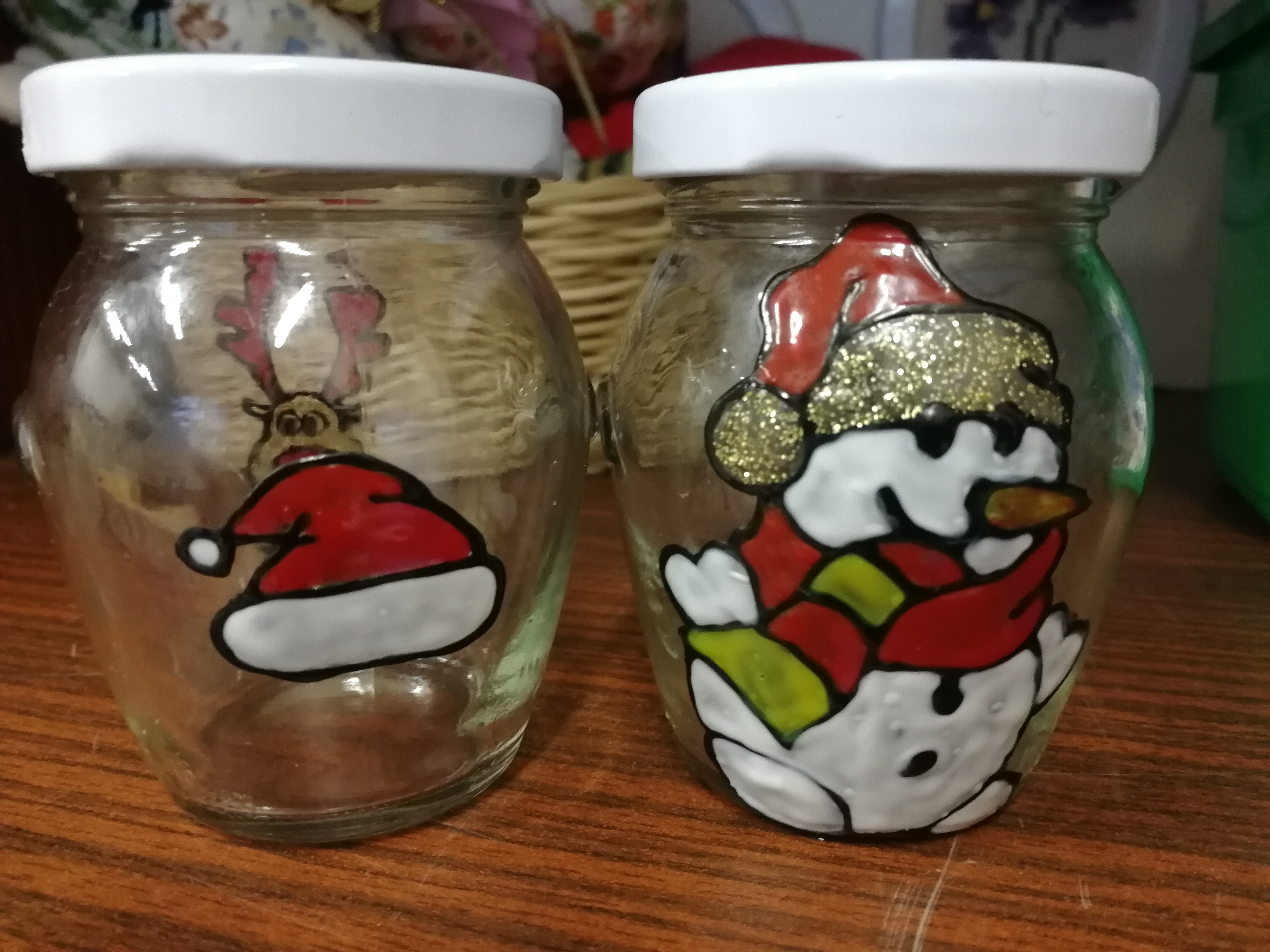 Už začíname chystať vianočné darčeky. Pripravujeme si poháriky, do ktorých uvaríme paradajkový lekvár. Na fóliu si nakreslíme farbami na sklo obrázky, ktoré po zaschnutí prilepíme na poháriky. Lepšie ako ich nalepíte až na naplnený pohár, aby ste si obrázok nepoškodili pri liatí lekváru. Potom môžeme urobiť aj čiapočku alebo pokrývku, aby sme schovali biele viečko. https://www.dobre-napady.sk/pre-domacnost/pletieme-a-hackujeme/1257-pletieme-a-hackujeme-ozdoby-na-zavaraniny
