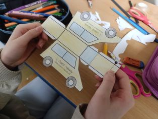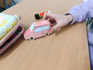Strihanie a skladanie, následné lepenie by malo začínať v predškolskom veku. Postupne na prvom stupni by sa malo stupňovať v zložitosti. Čo by mali zvládnuť štvrtáci? Napríklad poskladanie takéhoto autíčka.