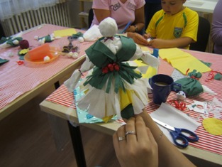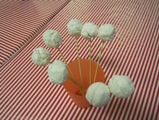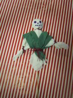 Namočíme si biele servítky alebo aj krémové a obtočíme ich okolo špajle tak, aby sme vytvorili guličku, ktorá má neskôr predstavovať hlavu panáčika. A môžeme začať tvoriť. Popustíme svoju fantáziu. Pomôžeme si gumičkami, šnúrkami...