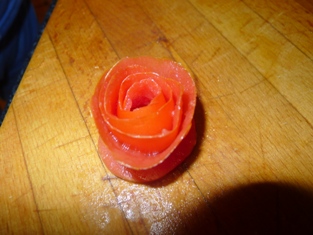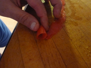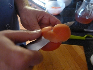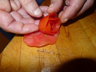 Vyrezávame malým nožíkom z veľkej mäsitej paradajky.