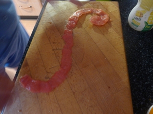 V rúre pri teplote asi 180 °C tri minúty prehrejeme poukladaný syr nakrájaný na nie príliš tenko - asi tak 3 - 5 mm. Potom ho vyberieme a prehneme cez misku. Necháme vychladnúť.