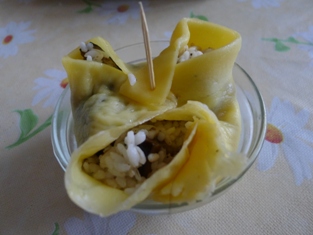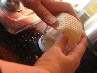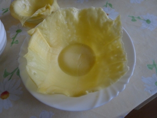 Tortové oblátky nakrájame na štvorce. V hrnci si necháme zovrieť vodu. Hrniec prikryjeme utierkou, na ktorú položíme oblátku. Oblátka vďaka teplu zmäkne. Okolo skleneného pohára ju potom vytvarujeme do misky. Necháme vychladnúť.