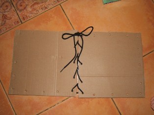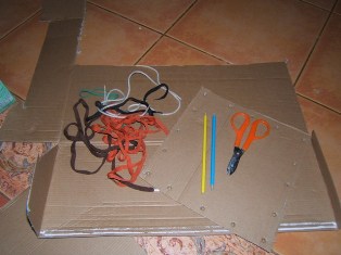 Rozstriháme kartónové škatule na rovnaké štvorce či obdĺžniky. Po krajoch urobíme tupou ceruzkou dierky. Snažíme sa ich urobiť na rovnaké miesto, aby sa jednotlivé "strany" dobre zošnurovali - zviazali. Pár milimetrov nevadí, ak ich posuniete.