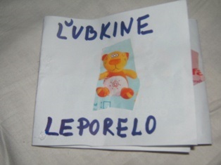 My sme rozstrihali kartónové škatule na štvorce o rozmere 25 cm x 25 cm. Po okrajoch sme urobili ceruzkou dierky. Všetky štvorce úplne rovnaké. Nám sa to veľmi nepodarilo tak je knižka trochu krivá. Nabudúce bude lepšia. Nechala som trojročnú dcéru strihať a robiť tupou ceruzkou dierky nuž sa všetky nedostali na správne miesto. Vôbec to však nevadí, dôležité je, že sa tešila z práce, ešte viac z výsledku a pritom trénovala jemnú motoriku. Priložili sme dva štvorce k sebe a zošnurovali starou šnúrkou z topánok. Potom sme priložili k jednému z nich ďalší štvorec a zase zošnurovali šnúrkou. Vzniklo leporelo. Dcéra trochu frfľala, že ona má iné knižky. Nuž sme uložili na seba tri štvorce a previazali šnúrkou ako bývajú kalendáre a potom zauzlili. Nakoniec sme nalepili na kartónové štvorce obrázky z omaľovánok a dcéra ich potom veľmi svojsky vymaľovala.