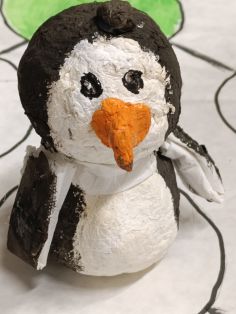 Ukázala som žiakom, u nás na dobrých nápadoch, čo sme robili kedysi a pustili sme sa v dvojiciach do toho. Vznikla mi jedna chlapčenská trojica a tá sa hneď pustila do modelovania tučniaka. Lebo vraj takého ešte na stránke nemáme.