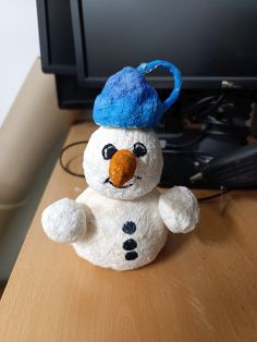 Papier sme namáčali v studenej vode a formovali do gúľ či iných tvarov. V škatuli sme ich nechali vyschnúť. Následne sme časti zafarbili neriedenou temperovou farbou. Po zaschnutí sme ich zlepili a fixami domaľovali oči alebo gombíky a tak...