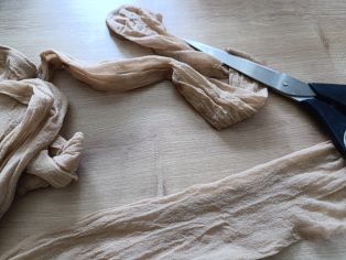 Nastriháme si silónové pančuchy a stočíme do "gumičky" do vlasov. Pripravíme si priadzu a háčik. Budeme háčkovať dvakrátnahodené dlhé stĺpiky počas všetkých troch okruhov.