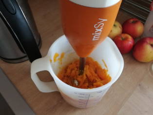 Potrebujeme: 125 ml šľahačky, 1 polievková lyžica karobu, 1 polievková lyžica posekaných kakaových bôbov, 400 g sladkých zemiakov
