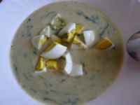 Podávame s nakrájaným vajíčkom na tvrdo.