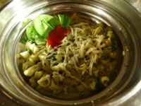 Podávame v miske ozdobené kúskami lístkov a paradajkou alebo trochou kečupu.