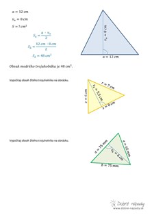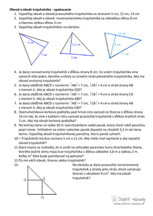 3. Vypočítaj obvod a obsah pravouhlého trojuholníka s dĺžkami strán 8 cm, 15 cm, 17 cm.