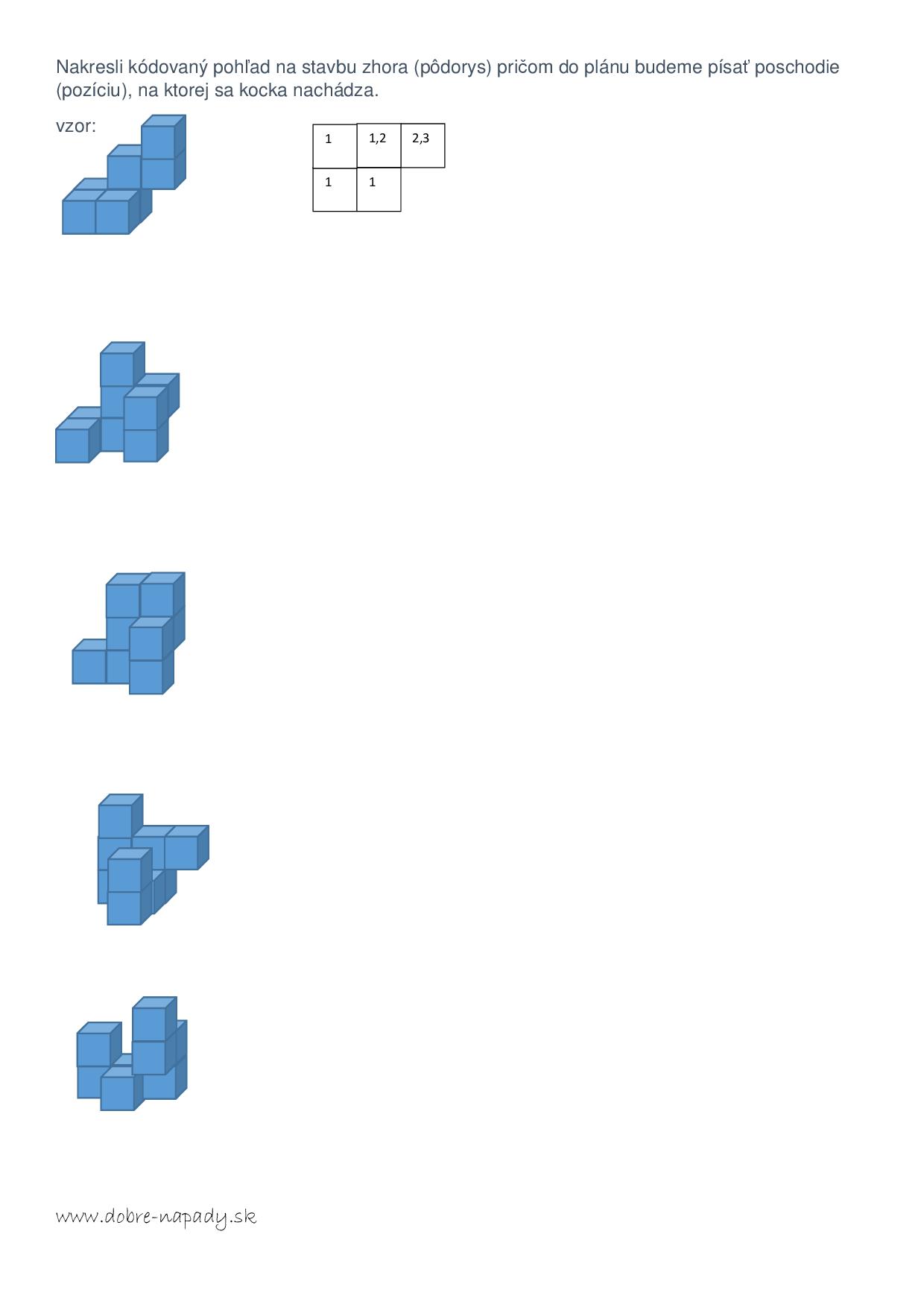 Odporúčame pomôcku: https://www.dobre-napady.sk/pre-skolakov/tipy-pre-skolakov/1576-staviame-kocky