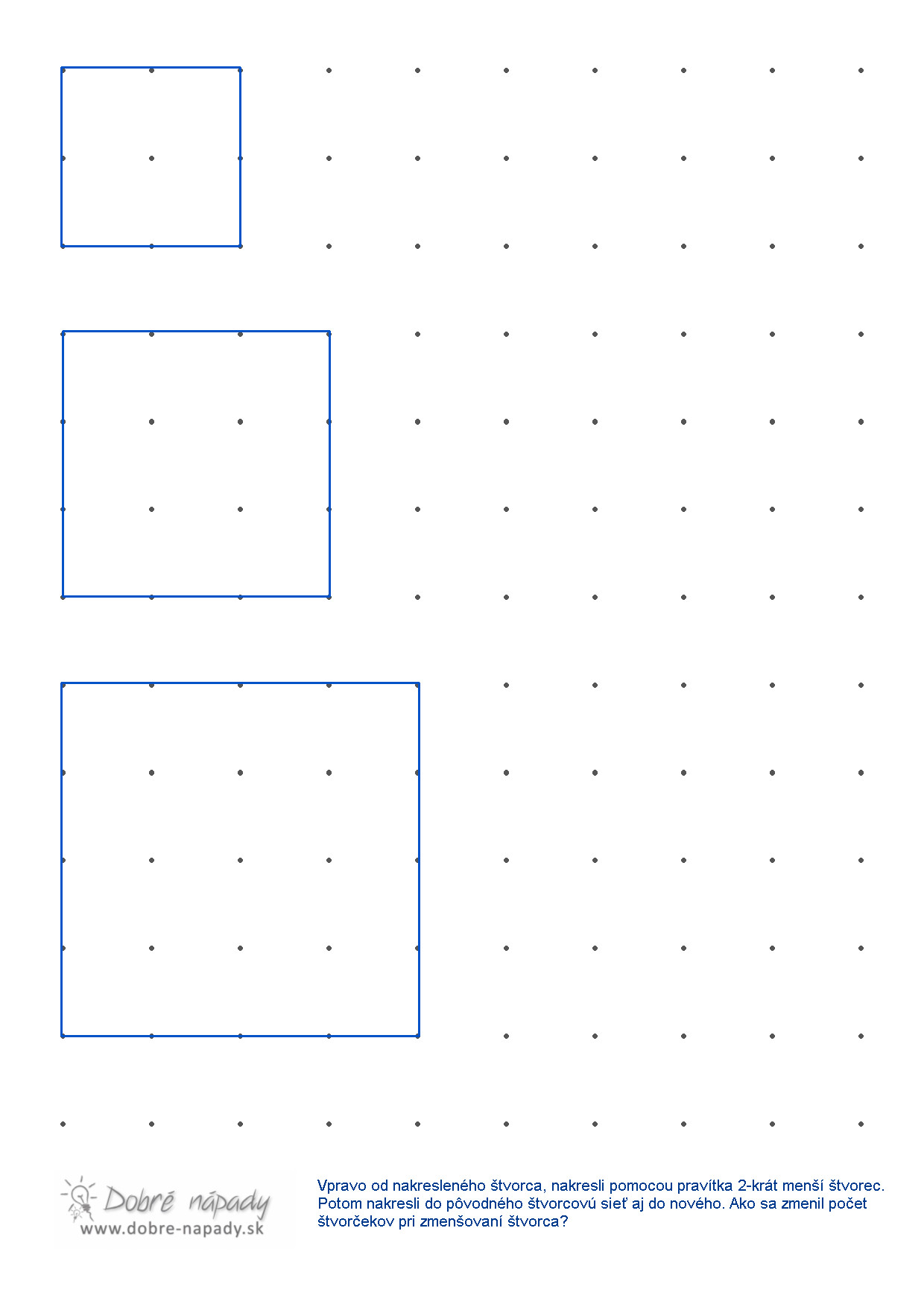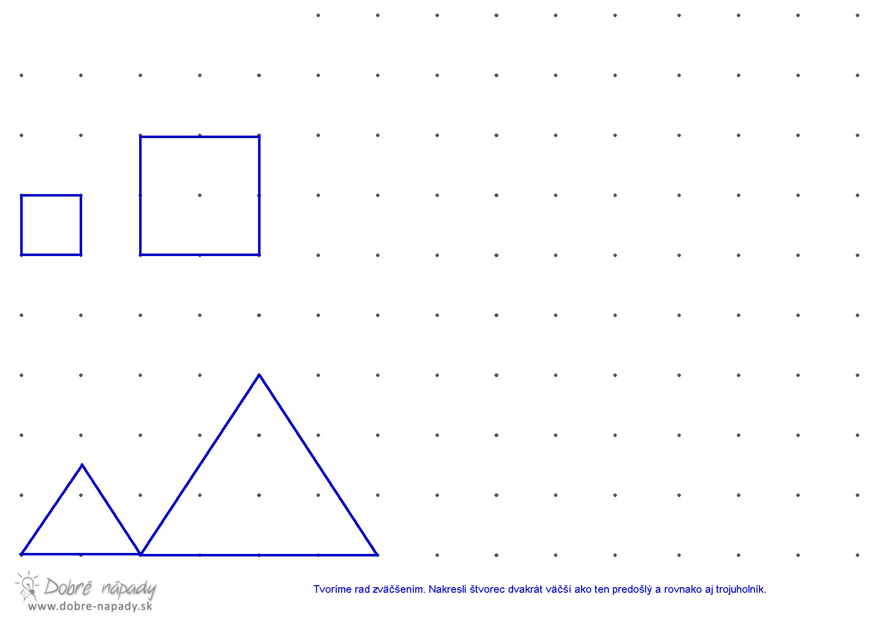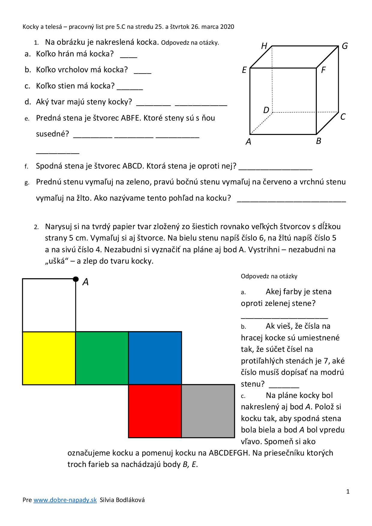 Staršie pracovné listy nájdete tu: https://www.dobre-napady.sk/pre-skolakov/hrame-sa-s-geometriou/stavby-z-kociek