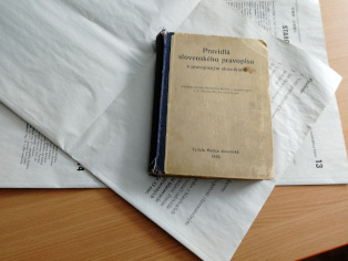 Ospravedlňujem sa, odbehla som od témy. Občas sa mi to stáva. Vraciam sa k pôvodnému. Na burze kníh zaujala dcéru knižka slovenského pravopisu z roku 1940. Úplne úžasný tip pre jej učiteľku slovenčiny, ktorá učí aj dejepis. No a doma? Zabalili sme ju do novinového papiera, ako sa kedysi balili knihy, aby sa chránili. Proste sme urobili starý prebal a dotiahli dizajn do vyššej dokonalosti.