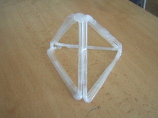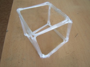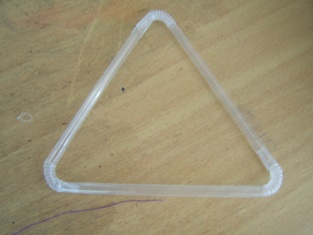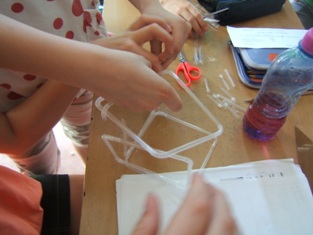 Slamky pomocou stlačenia a zasunutia o seba spojíme do trojuholníka, štvorca, ... Potom jednotlivé tvary k sebe poprikladáme a pozliepame pomocou lepiacej pásky.