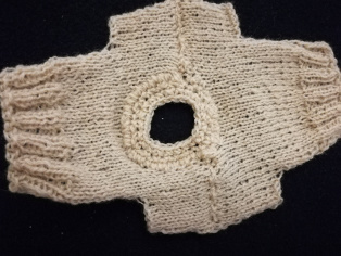Pletieme na ihliciach č. 2,5. Začneme pliesť na 22 očiek. Osem radov pletieme 2 očká hladko, 2 obrátene a rubová strana ako sa javí. Potom upletieme 12 radov lícovú stranu hladko a rubovú obrátene. Na každej strane pridáme po 6 očiek a ešte upletieme 6 rady lícovú stranu hladko a rubovú obrátene.