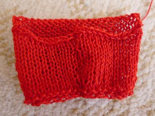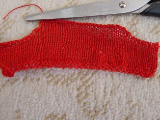 Upletieme 8 - 10 radov lícovým žerzejom nad 44-mi očkami. Potom z každej strany uzavrieme 12 očiek. V ďalších radov uzavrieme z každej strany po tri očká. A v posledných dvoch radoch uzavrieme z každej strany po jednom očku. Nakoniec uzavrieme všetky očká