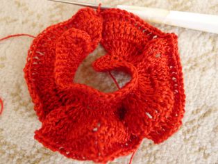 Na konci druhého radu pomocou pevného oka zháčkujeme riadok do kruhu. Ďalej už háčkujeme dlhými stĺpikmi okruhy. Urobíme ich koľko chceme tak, aby sme dosiahli dĺžku sukne podľa želania.