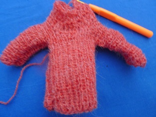 Takéto dva diely zošijeme na ramenách a po bokoch. V priekrčníku potom urobíme do kruhu tri rady dlhých stĺpikov ako rolák.