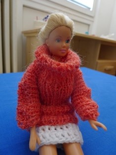 Už bývajú chladnejšie dni a tak sme pre našu Barbie začali vyrábať jesenné a zimné oblečenie. Ako prvý sme urobili dlhý vrúbkovaný rolák vhodný ku sukni aj nohaviciam.