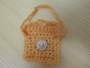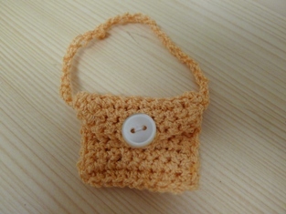 Na týchto fotografiách je kabelka uháčkovaná ako obdĺžnik z krátkych stĺpikov. Obdĺžnik je potom prehnutý tak, aby vytvoril uzatvárateľné vrecko, ktoré je zháčkované krátkymi stĺpikmi a zároveň pri obháčkovávaní je urobené retiazkou očko na uzatváranie na gombík. Dodatočne je urobená a prišitá retiazkou rúčka.