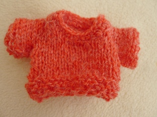 Predný diel začneme pliesť na 22 očiek. Prvých 6 radov pletieme obrátene. Potom upletieme 8 radov lícovým žerzejom (líce hladko, rub obrátene). V nasledujúcich radoch prihodíme na koncoch po 6 očiek, čo budú neskôr rukávy. Po upletení 4 radov lícovým žerzejom uzavrieme v strede 6 očiek a každú stranu upletieme zvlášť - teda ešte na každej strane 8 radov lícovým žerzejom.
