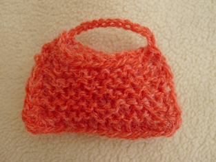 Upletieme 18 radov obrátenými očkami na 12-tich očkách. Potom obdĺžnik prehneme do tvaru vrecka a sháčkujeme krátkymi stĺpikmi. Všetko ukončíme rúčkou z háčkovanej retiazky.