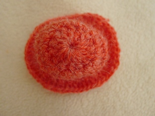 Urobíme si háčikom retiazku zo 4 očiek, ktorú pomocou pevného oka stiahneme do sľučky. V novom okruhu uháčkujeme 16 dlhých stĺpikov. V nasledujúcom okruhu potom 32 dlhých stĺpikov. V treťom okruhu znova 32 dlhých stĺpikov. V štvrtom a piatom rade 32 krátkych stĺpikov. Klobúk ukončíme v šiestom okruhu, kde urobíme 64 dlhých stĺpikov.