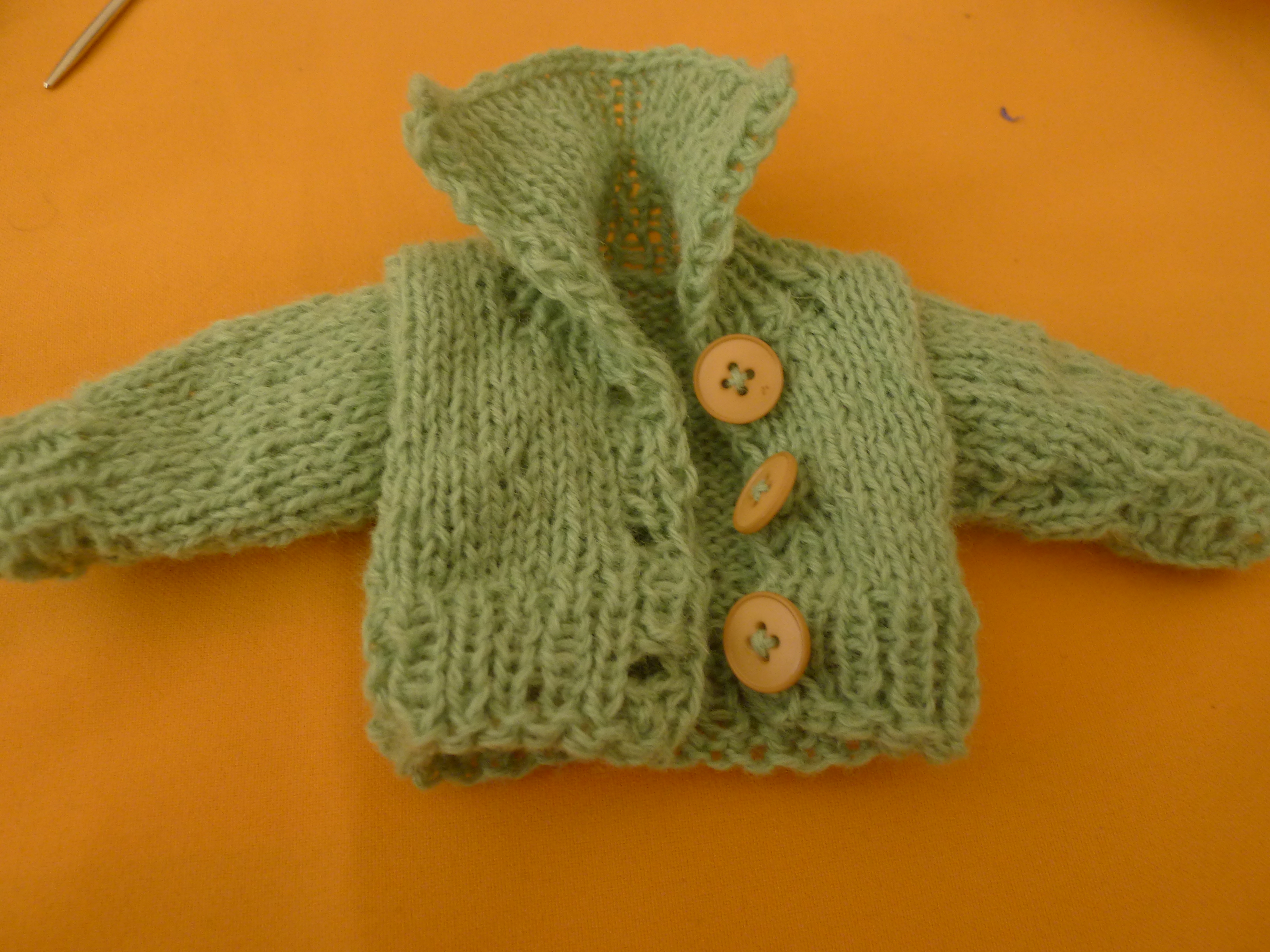 Rukáv pletieme na ihliciach 2,5. Začneme pliesť na 14-tich očkách hladko-obrátene 6 radov. Potom rozpletieme 2 očká na kraji na dve a pletieme lícovým žerzejom. Upletieme dva rady a zase rozpletieme dve očká na kraji. Zase dva rady a zase rozpletieme dve očká na kraji. Pletenie uzavrieme.