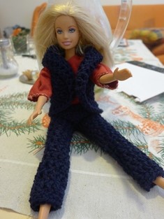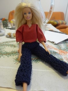 Už doma chystáme pre naše bábiky jesenné oblečenie. Začali sme Barbie. Tentokrát sme sa rozhodli pre nohavice a modernú vestu.
