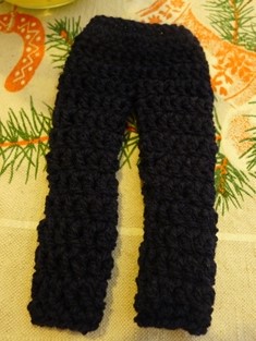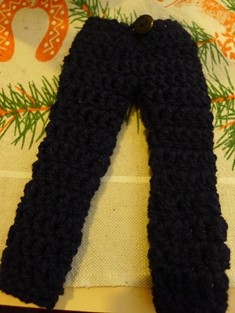 Nohavice začneme háčkovať na retiazke z 20 očiek. Prvé dva rady urobíme krátkymi stĺpikmi. V treťom rade urobíme už polodlhé stĺpiky a to v každom očku po dvoch. V nasledujúcom rade si rozdelíme háčkovanie na dve časti - dve nohavice. V ďalších radoch už budeme tiež robiť polodlhé stĺpiky. Každú časť uháčkujeme zvlášť a potom celé zošijeme a prišijeme gombík a dorobíme očko na zapínanie.