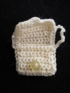 Háčkujeme háčikom č. 3,5. Uháčkujeme retiazku s dĺžkou 20 očiek. Potom háčkujeme krátkymi stĺpikmi 24 riadkov. Uháčkovaný pás prehneme na tretiny. Háčkovaním krátkych stĺpikov vytvoríme kabelku. Zároveň obháčkovaním vytvoríme očko na zatváranie kabelky gombíkom. Nakoniec uháčkujeme retiazku ako ramienko.