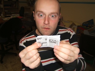 Čokoláda - hnedý hrubší obdĺžnik, ktorý sme ponarezávali tak, aby sme vytvorili okienka čokolády. Potom smeju zabalili do alobalu a previazali prúžkom papiera, na ktorom je napísané Čokoláda.