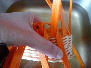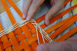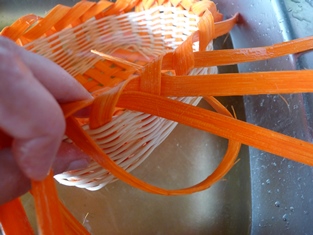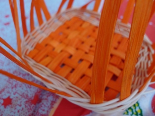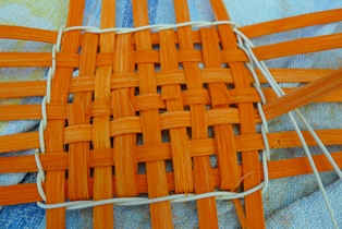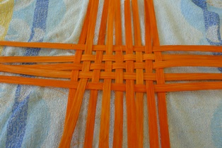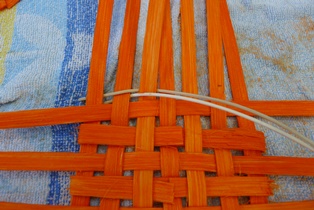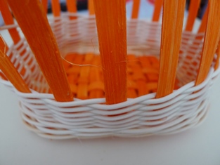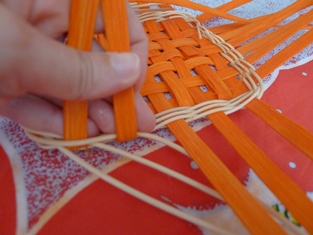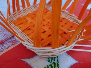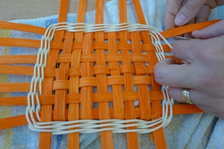 Dno košíka obpletieme 2 pedigom pre spevnenie 4 - 6 radmi. Potom začneme tromi prútmi hrúbky 2,5 obpletať dno košíka a zároveň otáčať ploché prúty hore, aby sme vytvarovali košík. Keď sa vám jeden prút minie, lebo bol kratší, dokončíme obpletanie dvomi - tak sme urobili aj my.