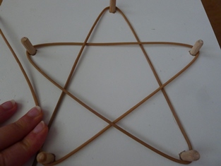 Hviezdu sme robíme pedigom hrúbky 2,5. Hviezdu obídeme dvakrát. Však nie len tak, proste snažíme sme sa prechádzať cez prúty raz hore, raz dole, aby bola pevnejšia po vyschnutí.