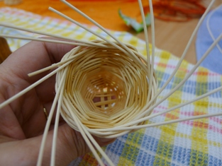Tento zvonček sme však preplietli ešte raz smerom dovnútra. Čiže sme prúty prepletali nie zvrchu ako prvýkrát, ale odspodu. Nechali sme vyschnúť a odstrihli konce. Takto je ukončenie zvončeka pevnejšie a odstrihnuté konce - ktoré nie sú vždy celkom pekné - sú vo vnútri zvončeka.
