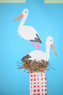 Námet je vhodný do štvrtého ročníka. Obrázok je lepený z farebných papierov a na výrobu hniezda je použitý kúsok suchej trávy či kvetu. Ak tento obrázok pekne zarámujeme, je vhodný ako darček napríklad aj na Deň otcov.
