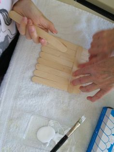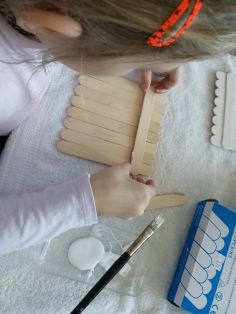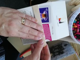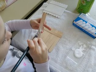 Paličky si poukladáme vedľa seba. Potom prilepíme duvilaxom priečne dve, prípadne tri paličky, aby sme zlepili tvar na obrázok. Necháme dobre vyschnúť, ale nie prudko niekde pri radiátore a podobne.