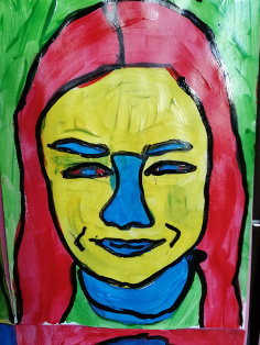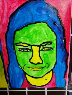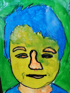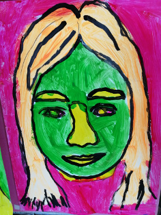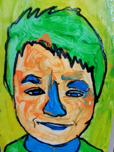 Pani učiteľka nakreslila tváre, nakopírovala každému viac. Potom im dala každému 4 farby, ktoré mohli použiť. Každú kópiu mohli vymaľovať len tými štyrmi farbami a vždy inak. Akási propedeutika ku kombinatorike k matematike vo vyšších ročníkoch.