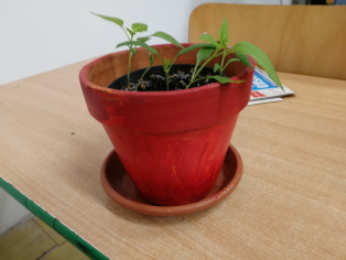 Zasadili sme do zakoreňovačov papričky. Keď podrástli, chceli sme ich posadiť do krajších kvetináčov. Nech ich môžeme na konci školského roka darovať obľúbeným učiteľom.