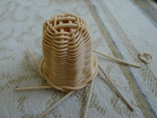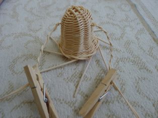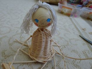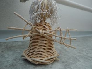 Pletieme pedigom hrúbky 2,5 osnovné prúty a obpletanie pedigom hrúbky 2 zvonček výšly 8 cm. Zo striebornej bavlnky si urobíme vlásky, ktoré spolu s drevenou korálkou a krásnou tváričkou primajstrujeme k zvončeku, ktorý má predstavovať telo anjelika. Ruky urobíme len motaním pedigu hrúbky 2 a zauzlením na konci, čo má predstavovať dlaň. Nakoniec urobíme krídla, ktoré po vysušení tavnou pištoľou pripevníme k telu anjelika.