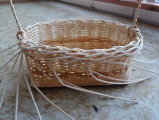 Urobíme uzávierku z osnovných prútov. Asi 4 - 5 radov. Uzávierkou upevníme rúčku v košíku.